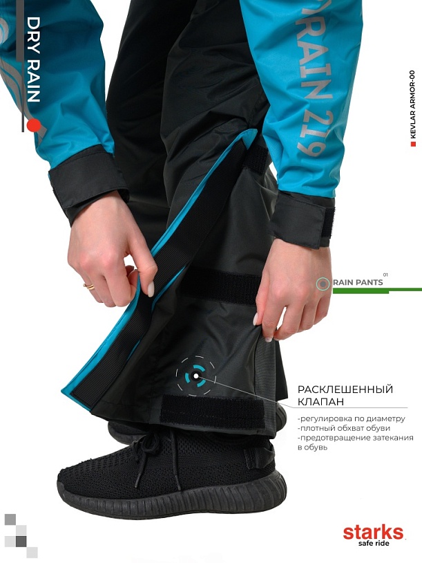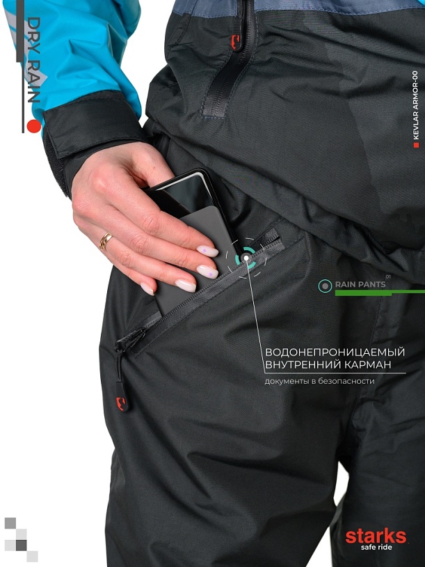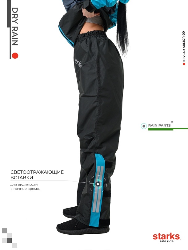 Мембранные дождевые мотобрюки STARKS DRY RAIN разработаны для экстремальных условий эксплуатации и высокой влажности.