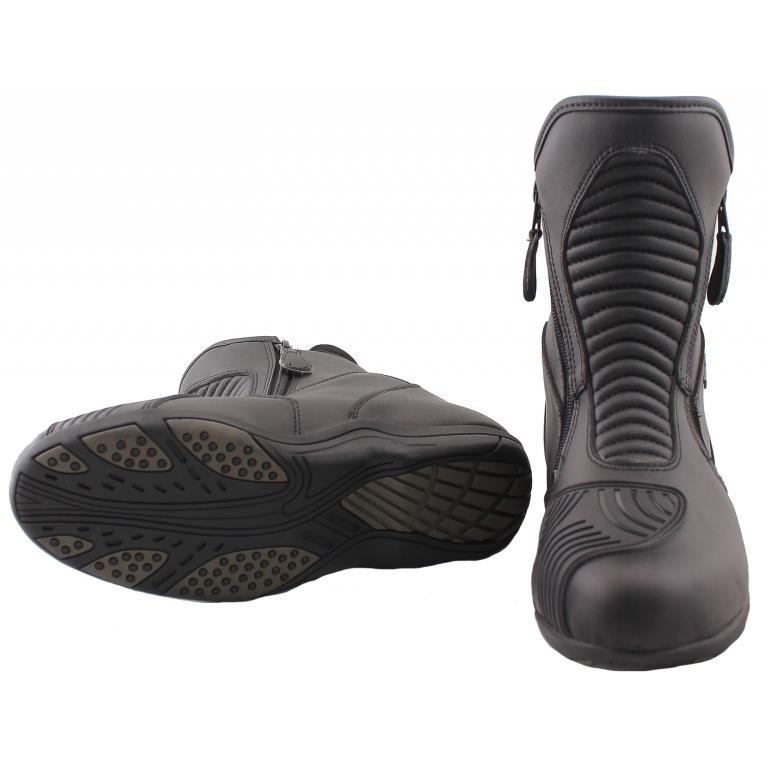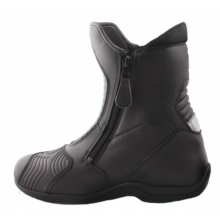 Укороченная модель ботинок - CAMPER – удачно подходят для туристических поездок и практичного повседневного использования в городском режиме. За счет встроенной мембраны, нога в мотоботах CAMPER, не промокнет снаружи и не будет потеть изнутри, что обеспечивает комфорт и удобство мотоциклиста. Изготовлены из натуральной кожи, которая обладает высокими водоотталкивающими свойствами и износостойкостью. Безопасность голени и лодыжки обеспечивают защитные вставки из слоистого пластика, интегрированные внутрь ботинка. Подвижные вставки-гармошки в местах сгиба, создают комфорт и удобство при любой посадке, а прорезиненные накладки на носке, не только облегчают переключение передач, но и препятствуют преждевременному износу ботинка. Удобная в использовании молния, защищена внутренним клапаном, что также препятствует попаданию влаги. Резиновая подошва, является противоскользящей и масло- и бензостойкая.