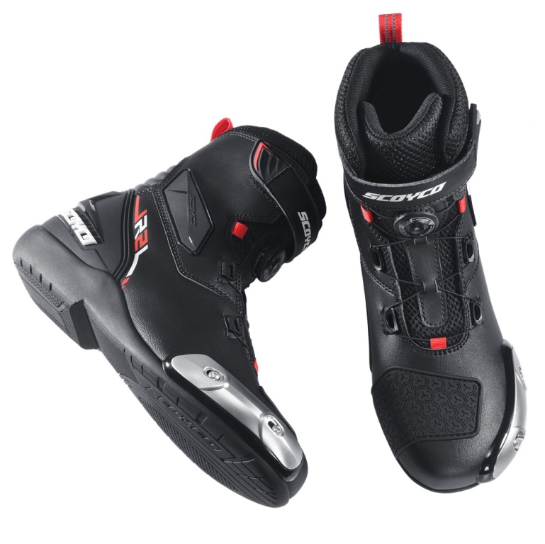 Мотоботы Scoyco MR002-2, выполненные в форме высоких кроссовок. Такая реализация дает полноценную фиксацию и защиту щиколотки, при сохранении подвижности стопы и удобства движения райдера без мотоцикла. К обязательному для мотокроссовок усиленному носку в данной модели добавлен металлический слайдер с внешней стороны. Удобство фиксации обеспечивает шнуровка на ролике - быстрая и без узлов. Для полного комфорта добавлена петля на заднике.