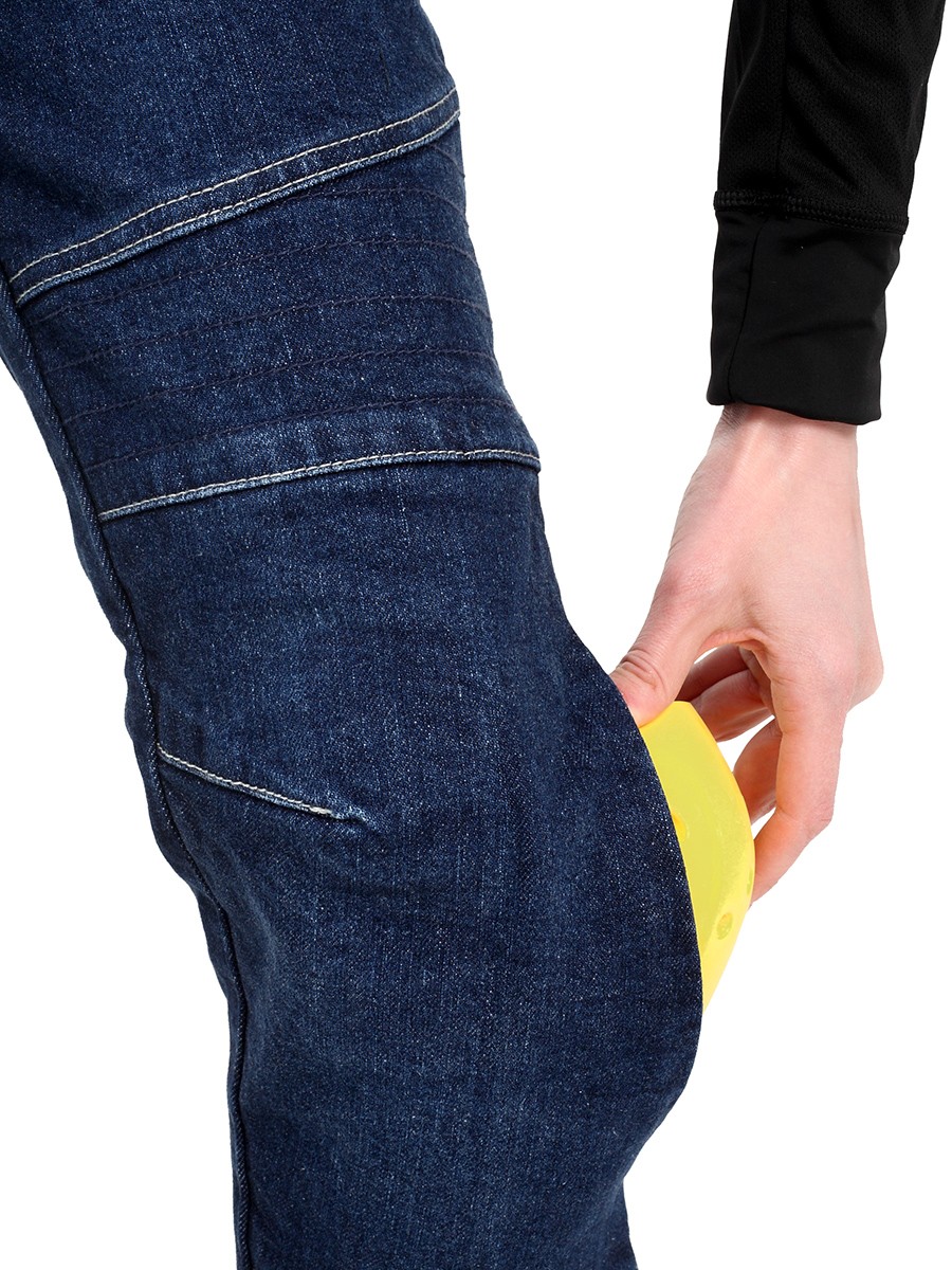 Защиту коленей можно установить и снять снаружи, не снимая джинсы (через внешний карман на вертикальной молнии, которая практически незаметна).