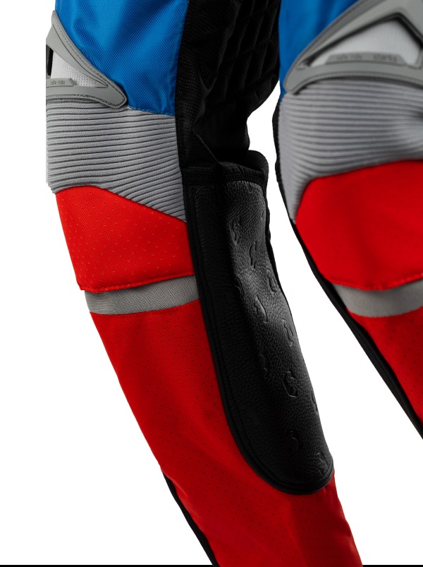 Задняя поверхность бедер штанов для мотокросса оснащена вставками из бифлекса, что позволяет надевать защиту и не создавать излишнего давления.