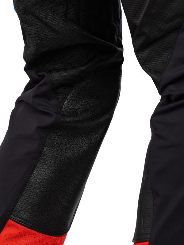 Вставки из натуральной кожи на внутренней части голени защищают от нагревающихся элементов мотоцикла.