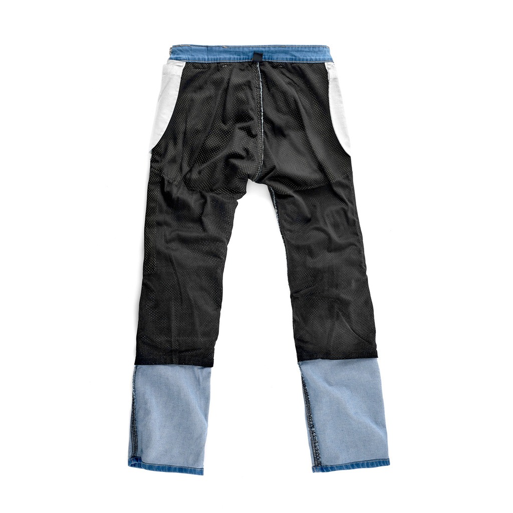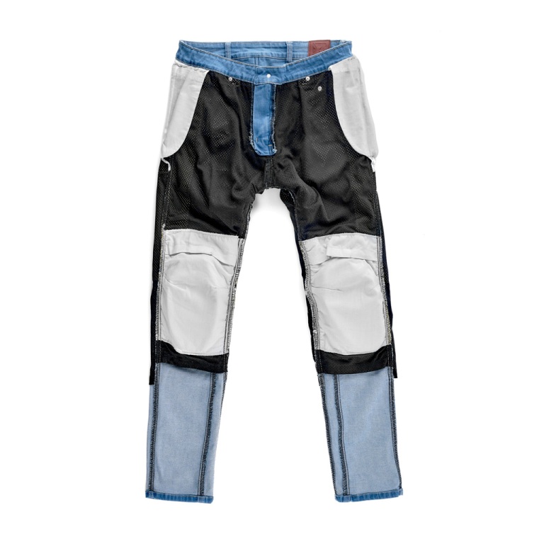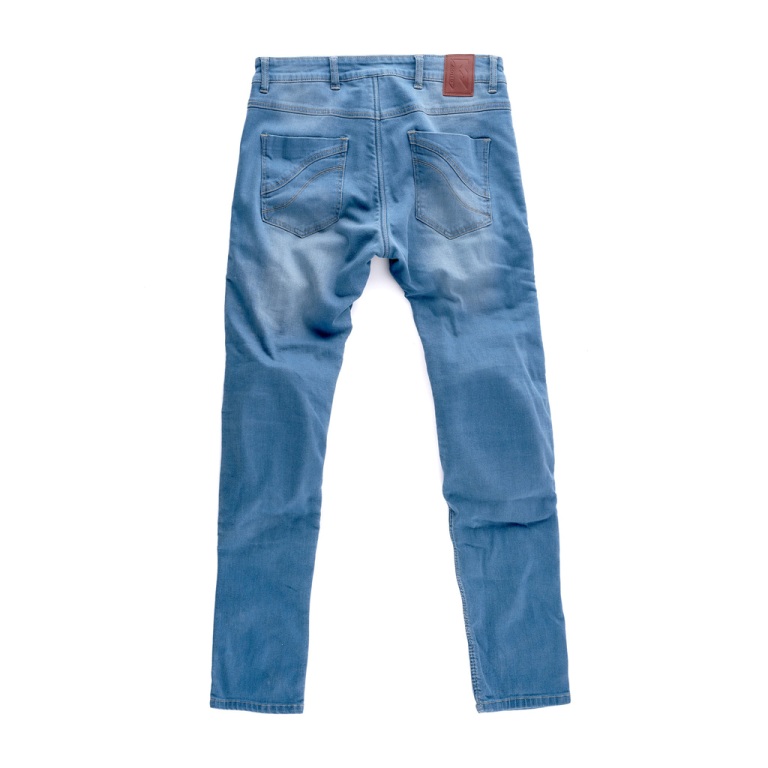 - Кевларовые вставки из материала ARAMID прошиты с внутренней стороны джинсов в задней части джинсов, по бокам от талии и до колен, в передней части джинсов в зоне колен.