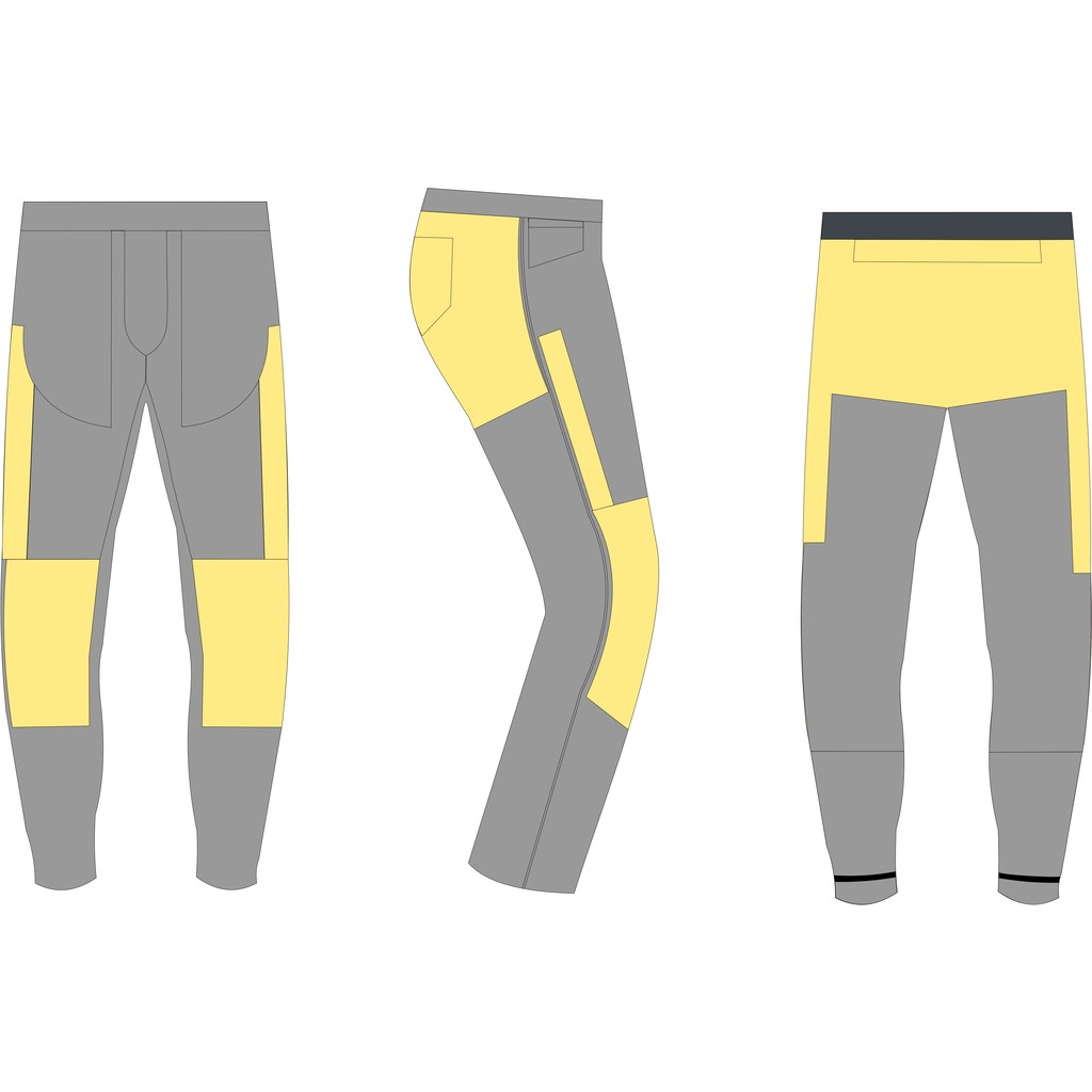 - Внутри штанин джинс вшитые карманы под съемную защиту колен уникальной конструкции, позволяет максимально точно регулировать высоту размещения защитной вставки.