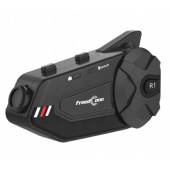 FreedConn R1 Plus – обновленная версия мотогарнитуры с видеорегистратором и интеркомом для 6-и человек на расстоянии до 1000 метров. Устройство подключается к телефону через Bluetooth и отлично подойдет для того, чтобы принимать звонки во время поездок. Технология шумоподавления DSP исключает шумы во время разговора по телефону. Встроенный видеорегистратор записывает видео в высоком качестве Full HD 1080 на карту microSD с объемом до 64Гб (не входит в комплект), а встроенный модуль Wi-Fi позволяет транслировать изображение на смартфон. Встроенного аккумулятора на 1500мАч достаточно для 30-ти часов разговора, четырех с половиной часов записи видео и 12-ти дней работы в режиме ожидания. Мотогарнитура защищена от попадания пыли и влаги по стандарту IP65.
