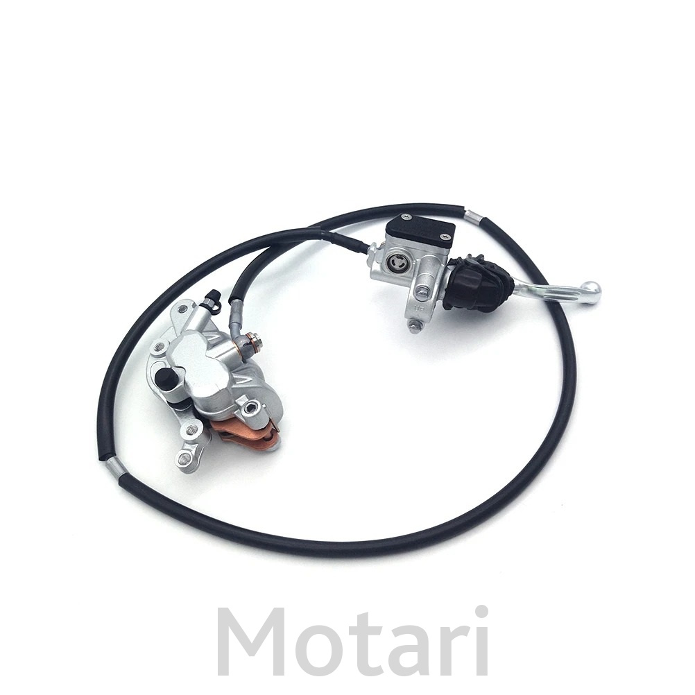 Полный комплектный набор: суппорт, шланг, главный тормозной цилиндр c рычагом, колодки тормозные. Заполнен тормозной жидкостью и первично прокачан.